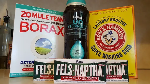 - 3-4 bars Fels-Naptha or Ivory Soap (I used to use Fels-Naptha but at $1.69 per bar it's more economical to use Ivory soap and it works just as well)