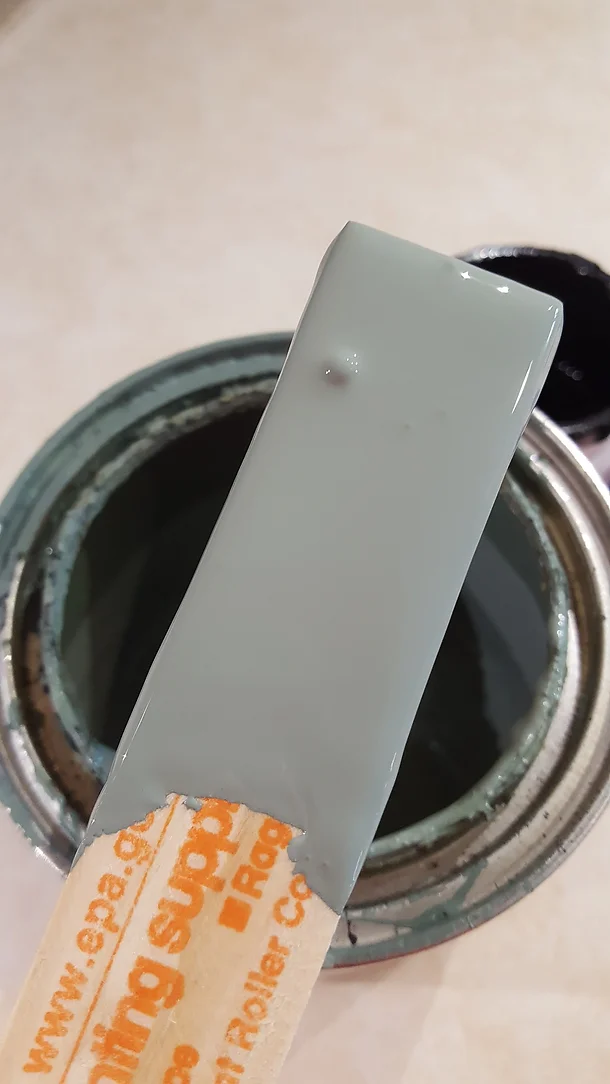 Beautiful color! This is Sherwin Williams Privilege Green. I mixed in some leftover Sherwin Williams Interesting Aqua making it a little more blue.