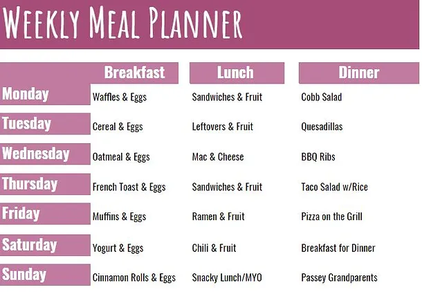 I'm still really liking using this 14 day repeating meal plan. It super simplifies things for me. We did decide to have a different meal one day last week but other than that we haven't gotten sick of the same meals yet!